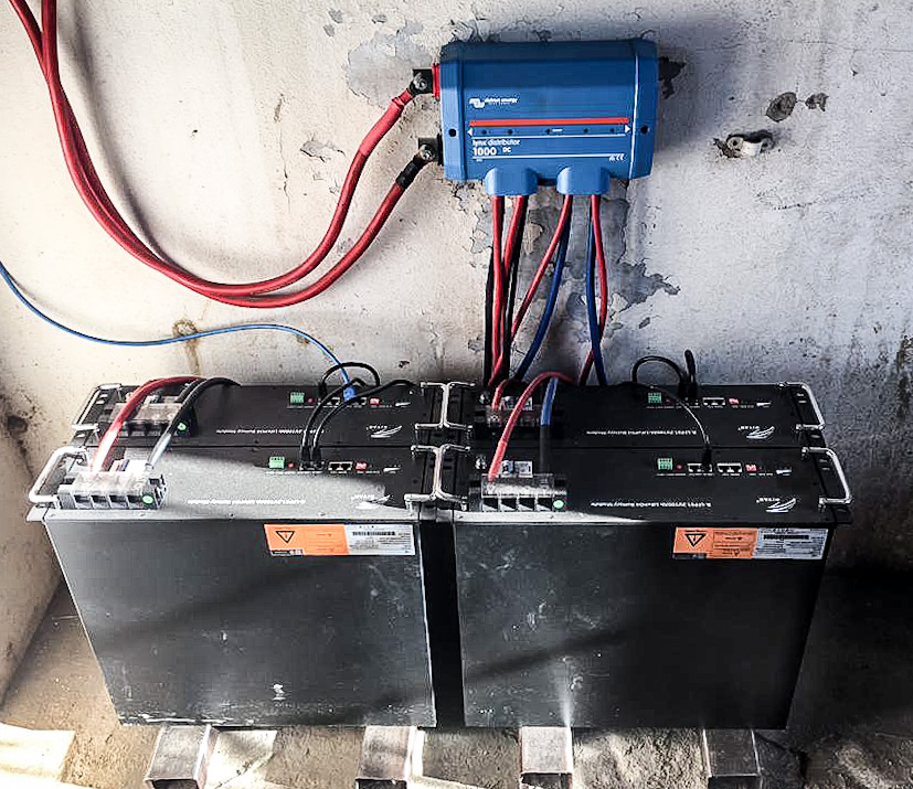 Man sieht es vielleicht nicht auf den ersten Blick. Das aber ist Teil modernster Solartechnik. Wir sollten die Wände vielleicht noch streichen und damit das Neue unterstreichen. Machen wir auch noch. Versprochen! Jetzt aber freuen wir uns erstmal, dass wir uns doch entschlossen haben, unsere nun schon fast 20 Jahre alte Solaranlage auf den neuesten Stand gebracht zu haben. Zwölf 2-Volt Bleiakkus haben wir durch diese vier Lithiumbatterien ersetzt. Sie liefern uns jetzt statt 24 Volt 48 Volt. Das heißt natürlich auch neue Inverter und neue Regler. Zusammen mit der Anpassung der Solarpaneelen dürfen wir jetzt hoffen, dass wir noch einige Verbraucher mehr anschließen können, die uns das Leben erleichtern. Wie z.B. eine Geschirrspülmaschine. Auch das Kühlhaus soll nachts laufen können, weil die Batterien tagsüber genug Strom gespeichert haben. Die nächsten Tage und Wochen werden es zeigen. Vor allem dann, wenn die Sonne im Winter weniger Kraft hat. Wir sind optimistisch. Hat schließlich auch genug Geld gekostet.